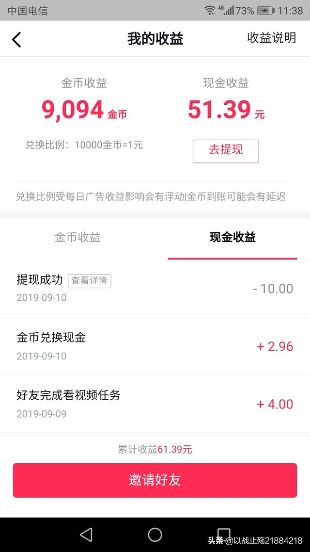 直接上图,看我的收益吧,才玩两天,抖音极速版