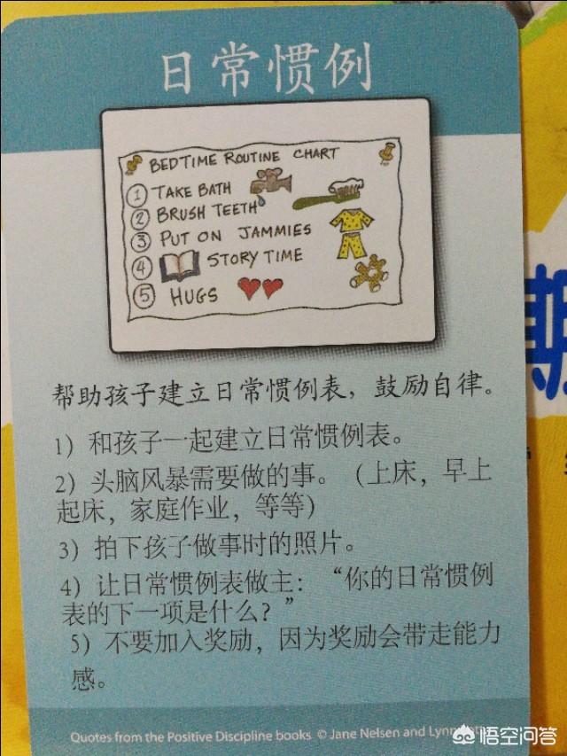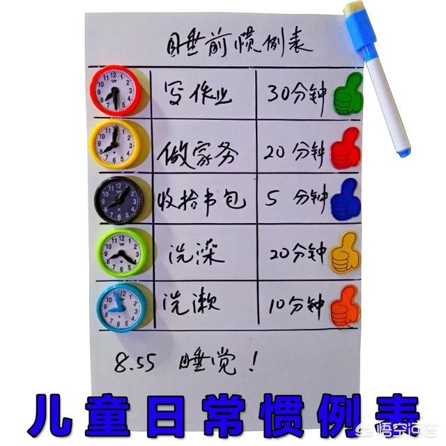 和孩子共同制定一个日常惯例表,可以是关于作业安排的,可以是关于起床的,让日常管理表说了算,而不是父母每天的督促和唠叨。日常管理表可以鼓励孩子自律。