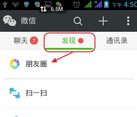 1.登录到微信,切换至发现,进入到朋友圈。
