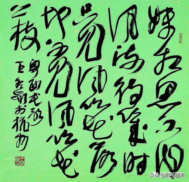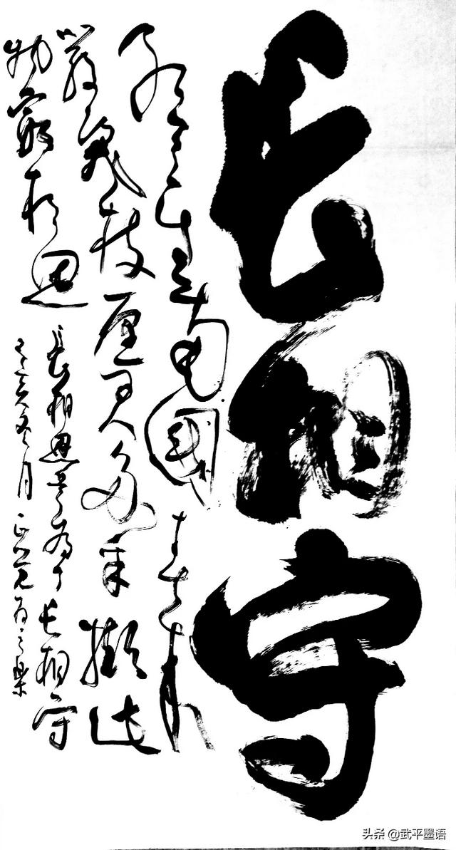 一幅作品有巧妙布白,就看你的功力了。尤其是大草。布白完全是由自己来掌控的。别人也没法告诉你。每个字在某个地方出现,自己要把它安排得当。摹人的作品很简单,你不需要考虑这些问题,因为人家都安排好了。如果我们自己创作,那肯定要考虑这个问题的。所以说入帖容易,出帖难。每个字怎么写,怎么布白完全是有自己来做的。你布白巧妙的话,写出来是非常美的。你看我们现在有太多人,临摹的非常棒,自创的就非常差了。就是因为结字造型,布白掌控不好,才写不出好的作品来。