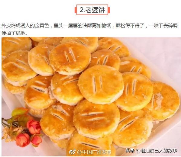 传统小吃,老婆饼,老公饼,鸡仔饼,杏仁饼,盲公饼,蹦砂等等,这些在一些大的饼家就有,例如老字号的是上下九的陶陶居,莲香楼,广州酒家,西饼连锁有东海堂,荣华,圣安娜等。价格在十几到三十几