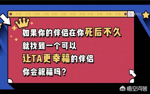 昨天奇葩说第五季收官之战争夺bb king的辩题就是《如果你的伴侣在你死后不久就找到一个可以让她更幸福的伴侣,你会祝福吗?》,这个答案也是肯定的。