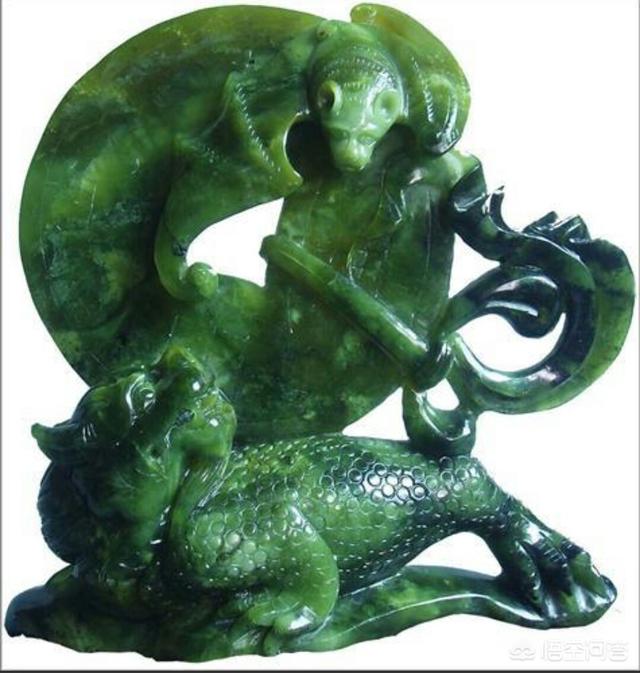 3.独山玉产于河南密果。是一种“次生石英岩”。黄色至黄褐色,白色、带绿,有些品种类似翡翠,也叫南阳玉。因其颜色多样,质地坚硬,可作玉雕材料,尤其大型雕件更显特色。