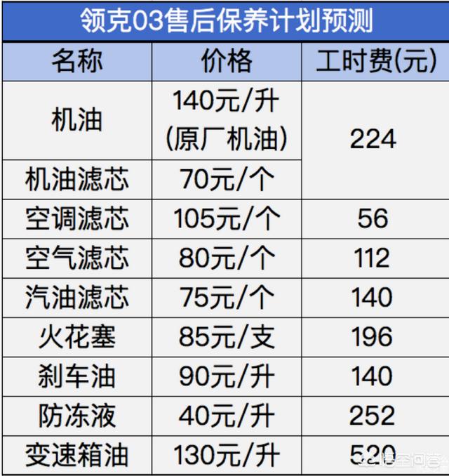经过预估,领克03使用6万公里的保养成本为7,360元,按照每年行驶两万公里的使用强度计算,一年保养约需要花费2,453元。