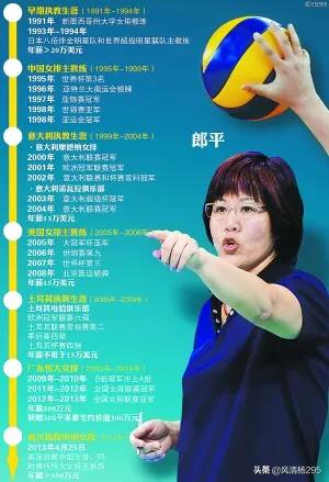 1995年2月15日,郎平受邀从美国返回国内,担任中国女排主教练,同年率队获得女排世界杯季军。