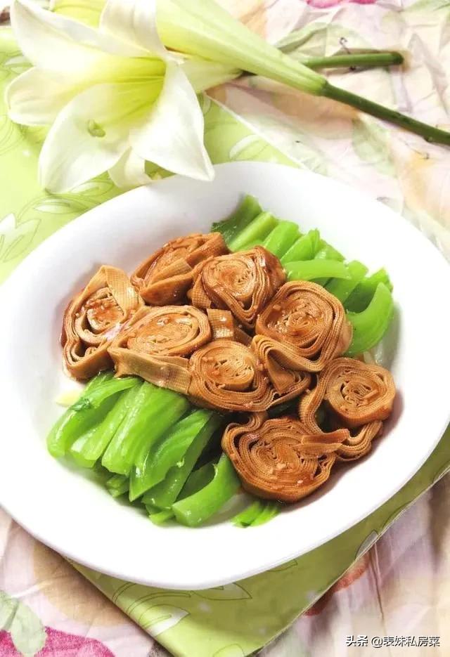 芥菜心以及素鸡的脂肪含量少,而营养丰富,如芥菜心有降低胆固醇的效果,而素鸡含有丰富的大豆蛋白,两者一起搭配炒制成菜食用,对怕胖的女孩子有很好的美容、健身、保健的食疗效果。