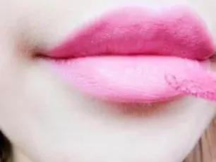 step4 手指按压最后用「干」的手指轻拍两种颜色的边际,让粉红色与橘色自然的融合。记得手指不能湿湿的拍,会让唇膏融在一起颜色糊糊的!