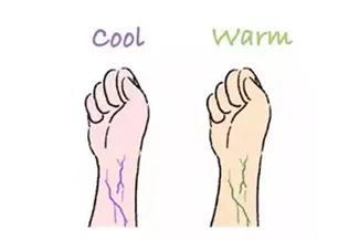 观察自己手背上的血管分布,每个人的血管颜色都是蓝色和绿色,只是分布的地方不同,如果绿色分布多,说明你是暖色,蓝色分布多就是冷色。