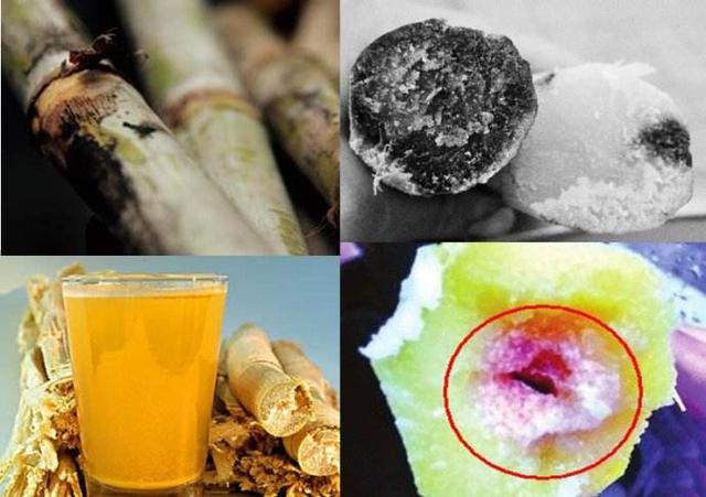 甘蔗是制取白糖最重要的原料。在日常生活中,也可以作为零食啃食。尤其是在南方,当甘蔗大量上市的季节,大街小巷的水果摊上都会有一把把的甘蔗。挑上一根,让小贩削好皮,带回家可以啃上几个小时,甜蜜的汁水让人回味。然而冬天过后,天气逐渐回暖,因为甘蔗含糖量高、营养丰富,存放在温暖潮湿的环境下,非常容易感染一种叫节菱胞菌的霉菌,该种霉菌生长表现为褐色或是红褐色,因此,我们就称这种甘蔗为红心甘蔗。甘蔗感染这种霉菌后,内部会产生一种叫三硝基丙酸的神经毒素。如果食用了这样的甘蔗,可能对人体的神经、消化、呼吸系统产生危害,轻者恶心、腹泻、头昏,甚至可能出现抽搐、昏迷,最严重者可能发生呼吸衰竭导致死亡。具体症状,还得看食了多少、个人体质、年龄段等等因素。