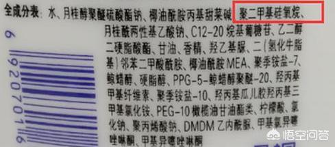 洗发水成分中,出现硅氧烷字样,硅氧烷是一种石油提取物,非常不溶于水,用来洗头会导致水油失调。这类成分能够填充头皮毛孔、发丝鳞片,帮助头发恢复顺滑,但是,对头发的伤害很大,容易导致出油、堵塞毛孔、掉发增多。