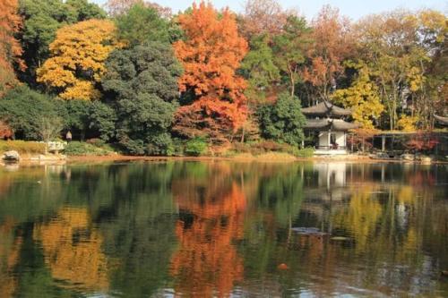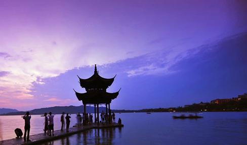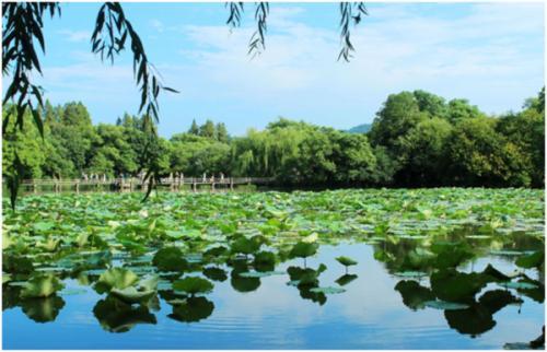 重湖叠清嘉,有三秋桂子,十里荷花。