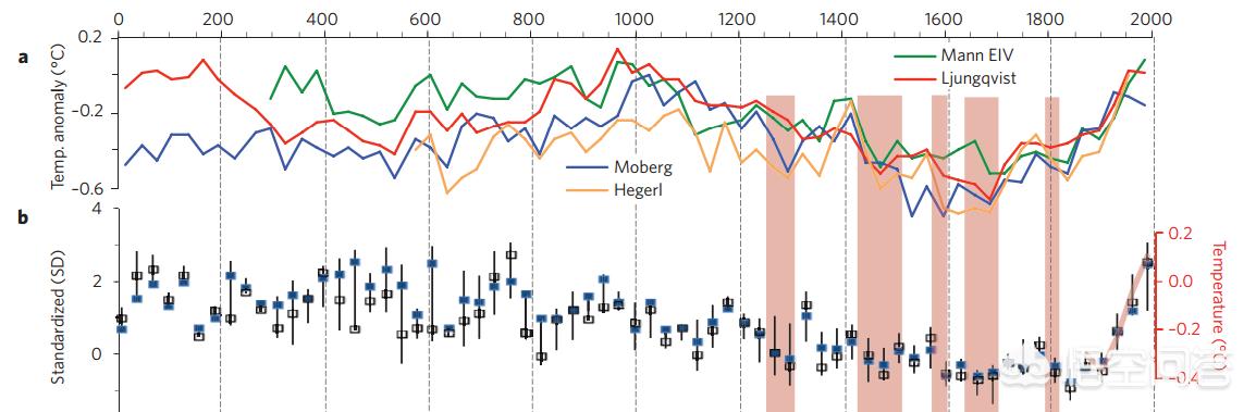 科学家们通过冰芯,石笋,树木年轮,珊瑚等气候代用资料重建了近2000年的历史气温序列;发现当前我们所处的时期很可能是过去2000年来最温暖的时期。
