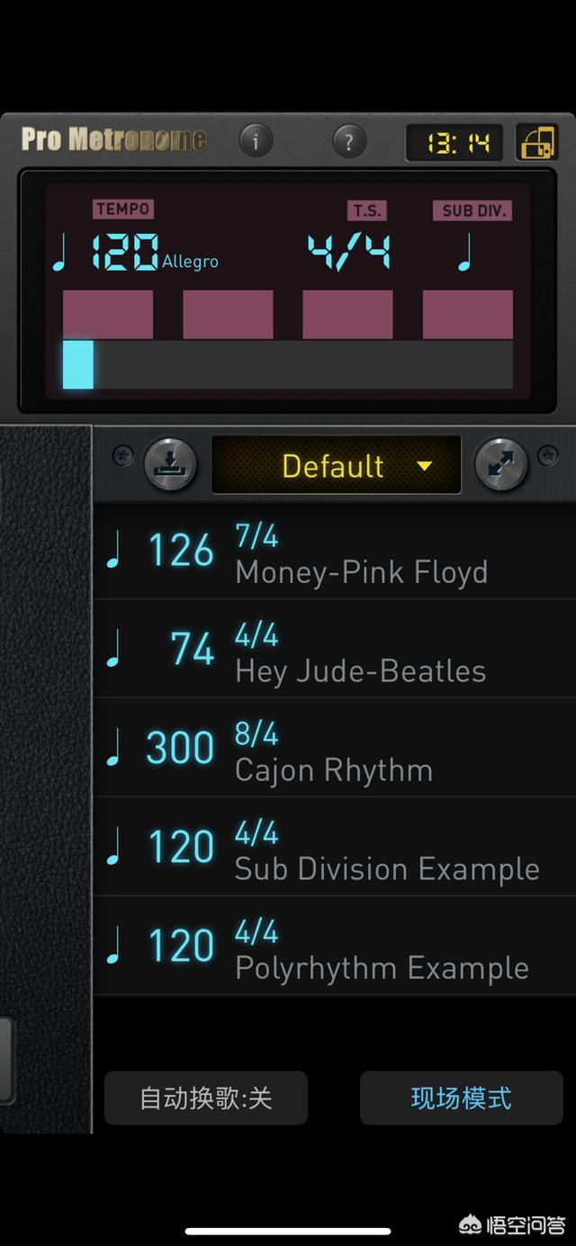 不过人打拍子还是不敢说那么准,要么乐队表演的时候鼓手还得听个节拍器呢,就是怕速度跑了,其实乐队里的人肯定都练到没节拍器也能合了,咱就算是不打鼓,用节拍器练其实也就为到这么个境界。