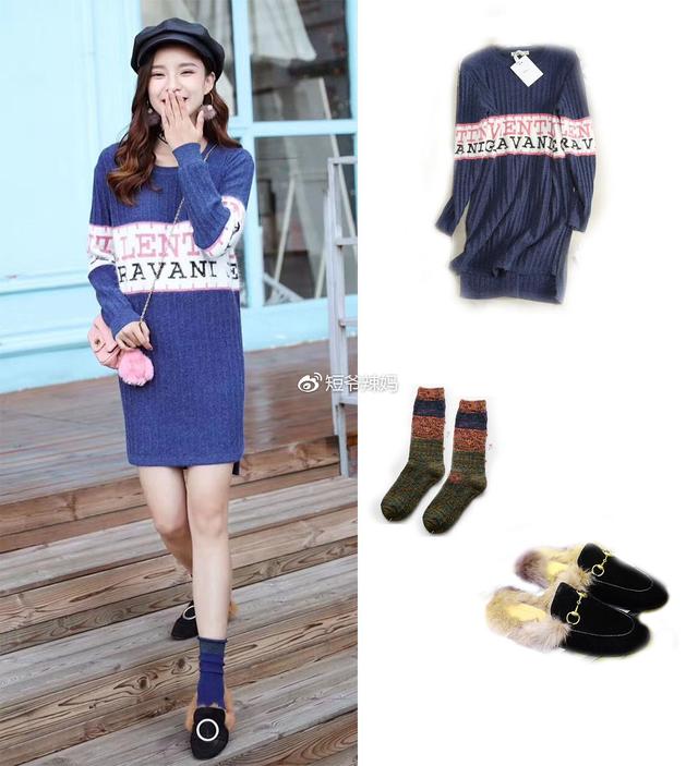 ▼蓝色字母长款毛衣+短裤(见图一)+堆堆袜+毛拖,与前者的蓝色不同是,多了字母的设计,显得更加活泼青春,减龄穿搭,约会首选哦,毛拖的配搭也显得非常随性,这样的穿搭,约会会更加愉悦哦~