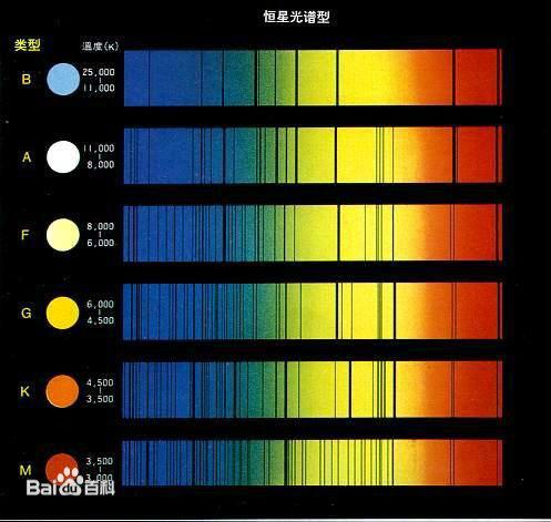 图中,彩虹色的光谱上,那一条条黑色的线基本上就是恒星的原子光谱谱线。当光照射在原子上,如果能量合适,就可以把原子激发到高能态。这个过程中,原子吸收了这个光子。而如果这种原子有很多,就可以在恒星的光谱上“打一个洞”,如上图黑线所示。每一种原子,都有其独特的一系列光谱线。宇宙学上,我们也经常用恒星的光谱来判断其元素构成。而这一谱线,和原子的结构密切相关。