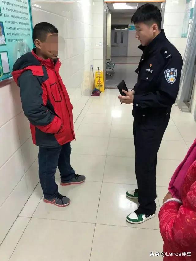 时间: 11月29日下午,济阳区济北派出所民警在送6名犯罪分子去医院做拘留前体检时,医院急诊科门口传来一阵争吵声。原来一名15岁左右的男孩因治疗问题与爷爷和母亲产生争执,男孩极力抵抗。