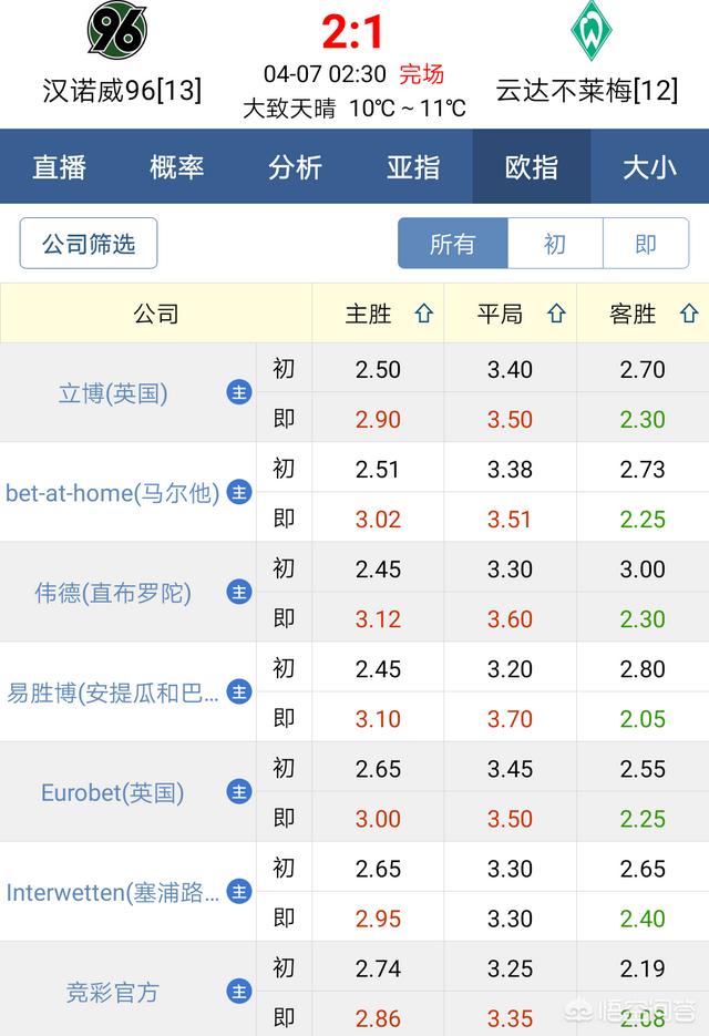 当时就预言本场比赛不来梅无胜,可以重注汉诺威受让胜,结果汉诺威2:1直接拿下比赛,5连败的球队击败了3连胜的球队。