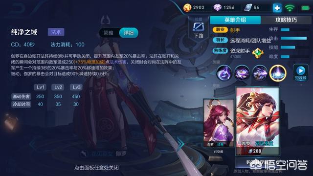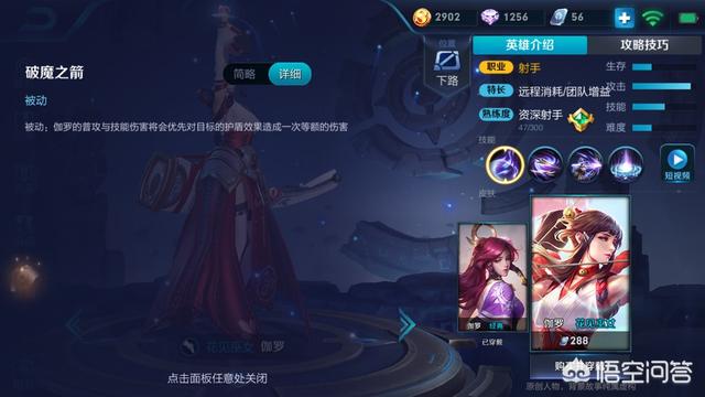 ②根据①的阐述,我们可以得知伽罗是一个远距离英雄,但是她并不是消耗类英雄,而是类似于孙尚香一样的斩杀型ADC。