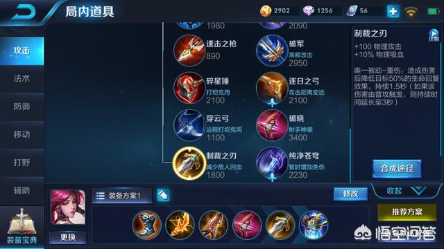 因为带了吸血铭文的关系,第二件电刀接下来就无尽破晓,出到无尽的时候加上铭文暴击率已经有56%,再开个大就有76%就打的很舒服了。需要注意的是出大件的时候增加暴击率的小件一定要先出,提升暴击率是关键。最后再配个制裁和复活甲即可。