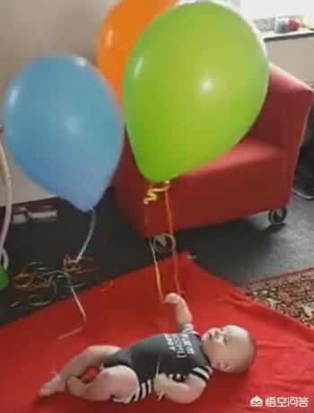 视频中,宝宝正躺在毯子上,他的双手和右脚分别用绳子牵着一个气球,随着孩子的手舞足蹈,三只气球也兴奋地“跳起舞”来,这让小家伙很是兴奋,看来玩得是很开心呢~~~你也可以给宝贝试试哦,让自己喘口气~~