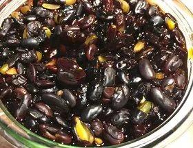 2、泡好以后,每一颗黑豆都饱满光泽,7天后打开盖子,一股浓郁的醋香迎面扑来,让人垂涎欲滴。吃不惯纯酸味道的朋友,可以加入适量榨菜碎末,吃起来口感更好;
