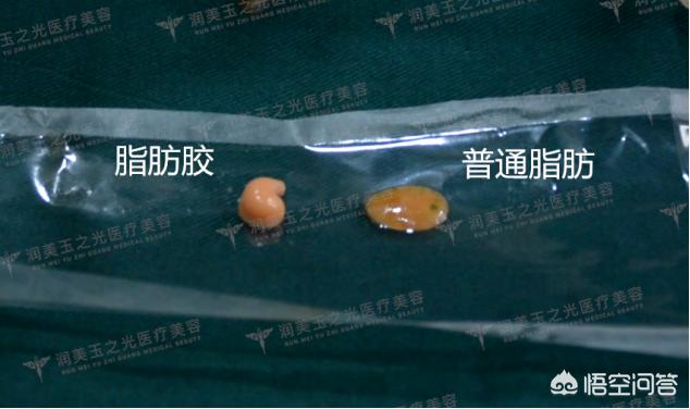 从外形上来看自体脂肪不论是大颗粒还是小颗粒都是液态;而脂肪胶呈凝胶状,看起来有点像果冻。