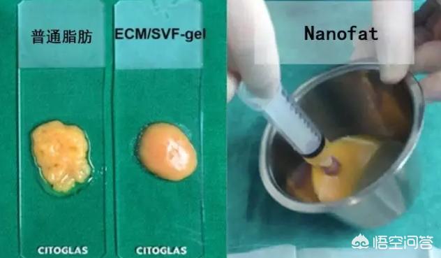 将纳米脂肪经过技术处理浓缩成胶冻状的SVF-gel脂肪干细胞胶,制备难度大,提取量少。它是脂肪的精华,其具有支撑和改善的双重效果。常用在面部年轻化中处理难度较大的凹陷和皱纹,在颞部、眶周、法令纹、鼻背、下颏,颈纹及痤疮瘢痕的治疗方面都取得了良好的效果。