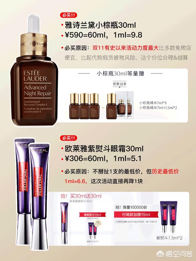 双11有史以来活动最低价!当天预定还有丝巾送!虽有偶尔有代购价格会更低!但是考虑到代购时间和税点,SO这个价格还是很划算的!2️⃣欧莱雅紫熨斗眼霜30ml