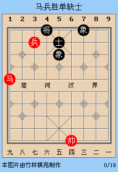 黑方的单士就像一把椅子,黑将就是太公了,稳稳地坐着,不惧马兵的任何进攻,这就是单缺士守和马兵的唯一形式。
