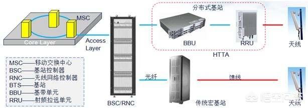 开始基带单元和射频单元都是在一个机柜里的,到了3G时代,开始有把基带部分和射频部分分开的基站,这里基带部分被叫做BBU,射频部分叫做RRU。
