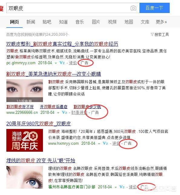 4.广告。当你在搜索双眼皮时一定看到很多这样的。