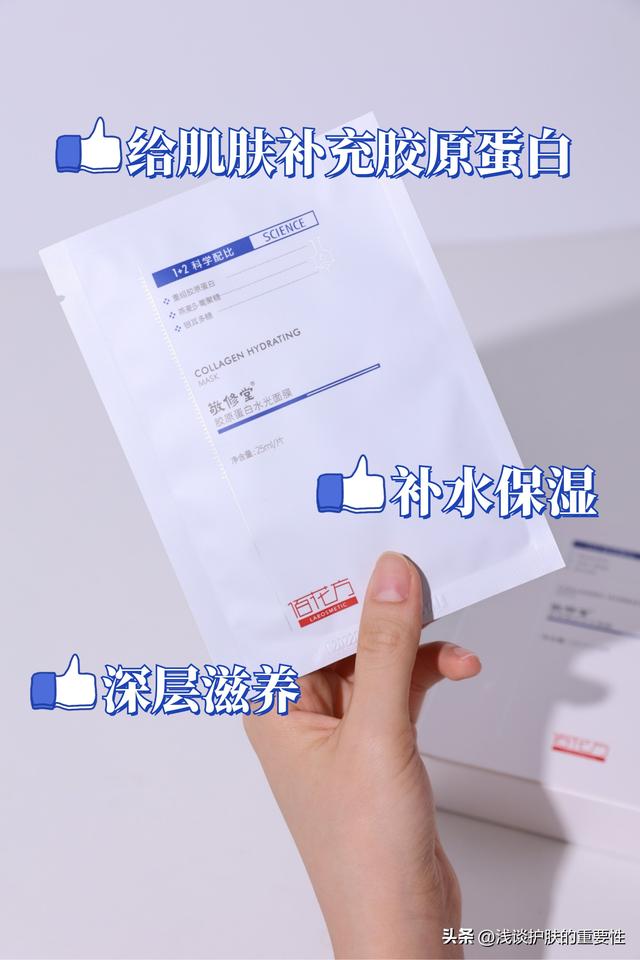 所以选择一款补水又能修护的面膜就很有必要了,我这款佰花方类人胶原蛋白面膜,它主打3型胶原蛋白成分,最接近婴儿肌本源的胶原,也是能被我们的皮肤吸收,能够给肌肤源源不断补充胶原蛋白,起到很好的修护效果,同时含有氨基酸和透明质酸钠,天然的保湿因子可以给肌肤提供源源不断的水分,消红和保湿效果都非常不错。