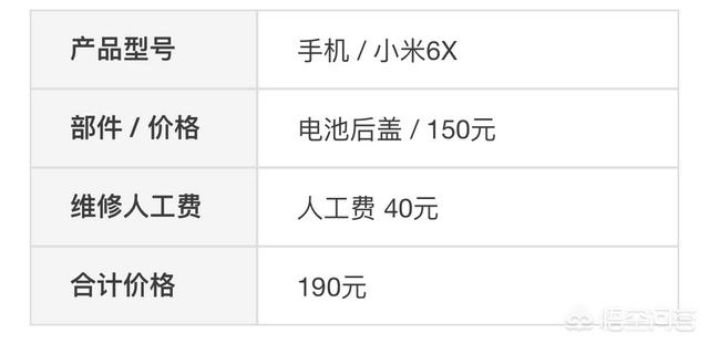 为了验证这个问题,我们可以通过如下思路来解决,通过查看几组小米手机的后盖维修价格,来分析一下。我们拿三款手机进行对比,一款是小米6X,一款是小米8se,一款是红米note7。在官网中,查询到小米6x后壳材质为全金属,而小米8se和红米note7后壳材质为2.5D康宁大猩猩第五代玻璃。