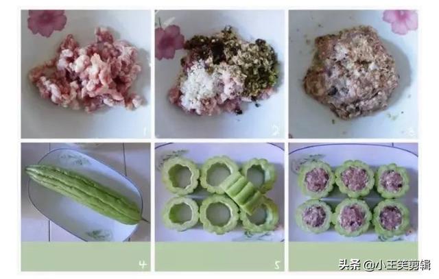 首先在兴宁:苦瓜是把苦瓜切成小段之后直接把肉馅塞进掏空的苦瓜里面,也有其他的做法比较特别的,特别在哪呢?在馅!馅是糯米加肉再加香菇尤鱼叮,放在锅里炒,炒到有香气扑鼻的时候就可以酿进苦瓜里了,然后放进锅里蒸,这样做出来的酿苦瓜咬上去有糯米香菇尤鱼的鲜味又有苦瓜的甘味,如果再用火烩一-下,味道就更好,苦瓜已没有生味,与馅完美地结合。这个大家可以.尝试一下!苦瓜虽苦,但它绝不把苦味传给“别人。