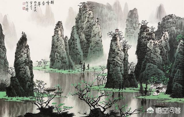 白雪石的漓江山水画,利用西画的光影技法,把山的倒影体现出来,画面质感突出,立体感强,又不失中国画的韵味。
