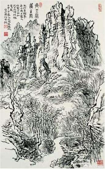 中国山水画的笔墨形式结构,无论现代形式还是传统笔墨形式,都应以笔墨形式结构的自身价值而体现山水画形式的艺术价值。中国山水画如果失去这一基本价值的判断,那中国的山水画,就不成为"山水画",而成了风景画。为什么中国文化中把风景称之为∥山水.∥,而非风景,其中最重要的就是为了体现“风景"之中的笔墨形式结构的基本价值。正因为有了这一其本价值,才使中国的山水画形式具备了中国文化中的独特艺术价值与艺术审美价值。也正是这一独特的价值理解,才会使"山水画"成为中国文化精神中具有崇高地位的价值意义。。。如果认为一一后笔墨时代的山水画既风景画,那么中国文化精神中所体现的崇高价值也就完全失去了它存在的基本价值。这对于中国文化精神的倡导,无疑是一种丧失!(画自作)。欢迎评论。