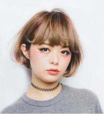 齐眉薄刘海剪碎,显发型自然清爽,两侧头发剪短露出耳朵,干净利落的设计,显气质文静清新。