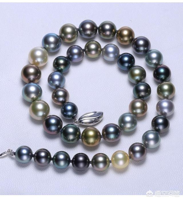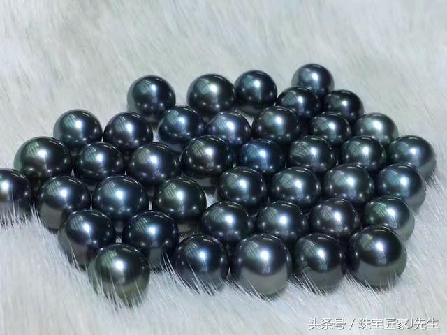 有核珍珠,常见直径为8-13mm,颜色为黑色,有以黑为主的较多衍生色(如:灰、褐、孔雀蓝、绿、紫等),珍珠皮质细腻光滑,光泽别致且多伴晕彩,能给人神秘高贵的视觉美感。