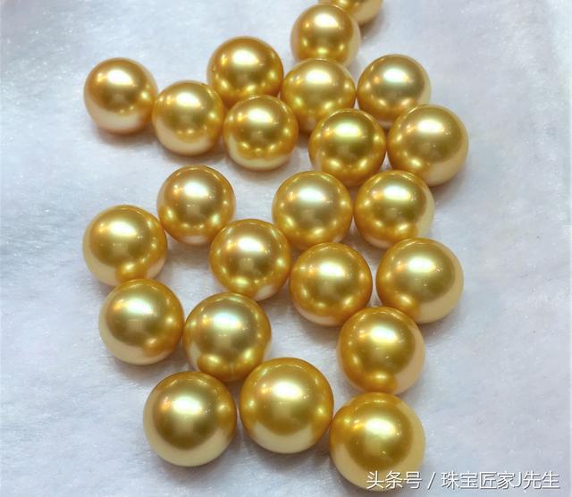 有核珍珠,常见直径为8-13mm,颜色为金色,有深浅之分,珍珠皮质细腻光滑,光泽金光夺目,能给人富贵大气的视觉美感。