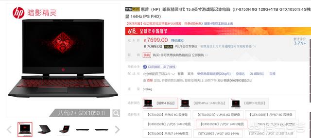 我在淘宝上找了半天,暗影精灵4代在惠普的淘宝官方旗舰店并没有出售,我只能到京东的惠普自营店去寻找。然而发现暗影精灵4代也分很多种不同的型号,而拯救者Y7000也分很多不同的型号。当然型号不同价格也不一样,我不可能拿最贵的那个型号来对比最便宜的那个型号。