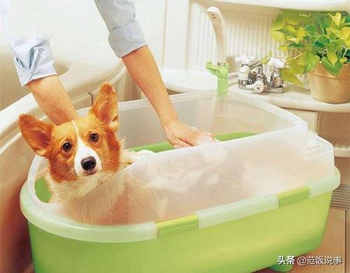 1、给狗狗洗澡的水不能太烫和太深,不然它会害怕,不敢进去的。水温在35摄氏度左右最为合适,只要手摸着不烫就可以了。另外还要准备好足够的热水,给狗狗冲洗。