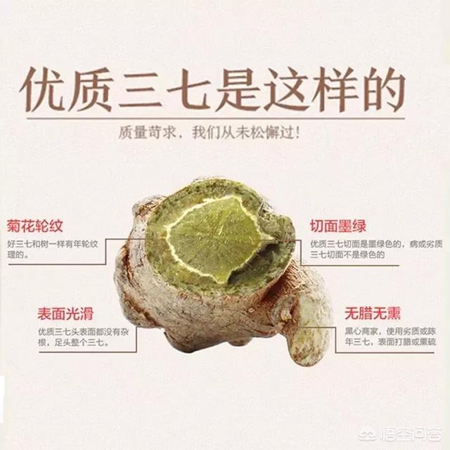 【三七粉】顾名思义就是用三七研磨成粉,磨粉后我们的身体会更容易吸收和食用。首选我们选打粉的原料也非常重要。随着国家对中药原料的重视,现在打蜡和抛光的三七比以前少了很多。但还是有很多不良的商家会以身试法。好的三七切面应该是这样的: