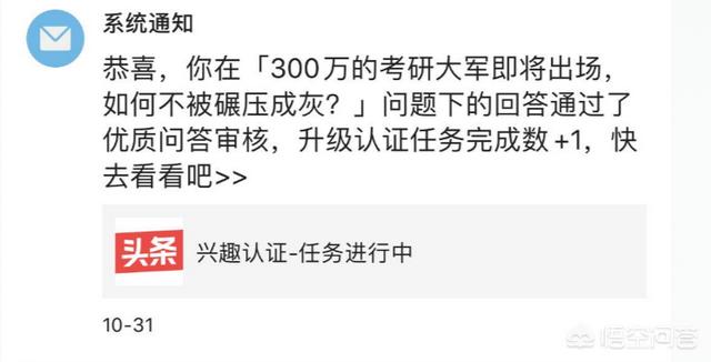 攻略五,你的回答在被推送到头条首页后,如果阅读量超过1000,符合系统评判标准的话,会马上优质回答加一,最长不会超过12个小时,至少我是这样。也就是说,你的回答被推首页了,阅读量也够了,结果一天也没接到系统通知,那就别等了没戏了,准备下答一个问题吧。