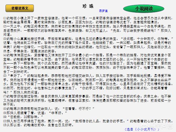 具体来说,看小说不能光看情节,更不能光看结局。哪怕专注于情节,也要看小说情节的开端、发展、高潮、结局分别是什么。有的小说高潮部分就是结局,戛然而止,收到的效果往往意料之外,情理之中。有的小说中间曲折,故事有突转,就要看矛盾的纠结点处对于主题的表达是否有益处。