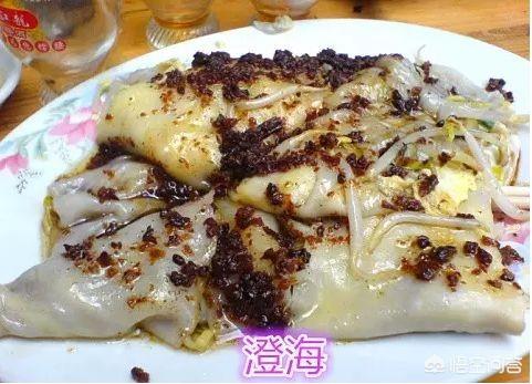 4.澄海肠粉,也是比较有特色流派,其特别之处就是在粉上面淋上一层油爆过的浓香“菜脯油”,配菜则选用绿豆芽,也和汕头肠粉一样有海鲜配料供选择,吃起来别有一番风味。