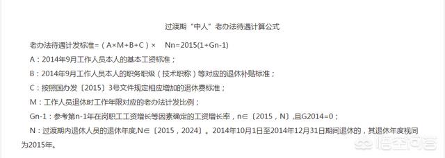在2014年10月1日以前参加工作,10月1日以后退休的这部分人员,被称为“中人”。这部分人的退休金计算比较复杂。对于这部分人员,因为个人缴费账户的金额较少,为了保证收入平稳,国家特地设立了10年过渡期,过渡期内实行新老待遇计发办法对比,保低限高,过渡期结束后退休的人员执行新办法。