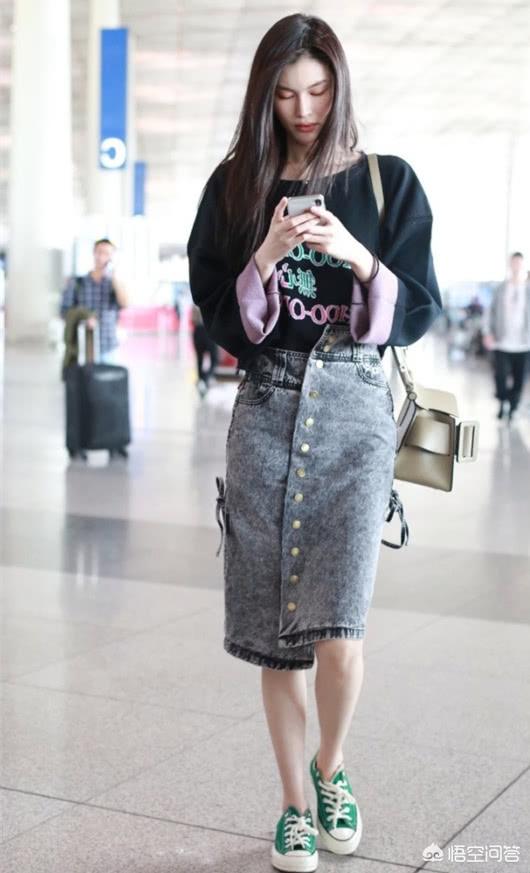 百褶裙太没新意了!pick灰色牛仔裙,遇上黑色字母卫衣,干练中带有一丝洋气,让你逆龄成18岁的少女,承包你春夏最俏皮搭配。将黑色字母卫衣塞进灰色牛仔裙里,提高腰线同时更添一丝率性,美得很出众。绿色的帆布鞋,更是锦上添花,活力值满分,你学会了吗?
