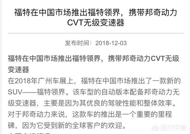 但不可能是江铃的,因为发动机是谁的就是谁的,不是改个名字那么简单,背后还有产权、技术、资质、名声以及利益的冲突。所以,领界发动机用ecoboost就代表肯定是福特的,至于代号那是同一发动机生产厂的命名规则。再说,领界本来就是针对国内市场的车型,1.5T 的功率调教不高可能是为了匹配混动,调功率对车企来说就是小儿科,只是想不想,愿意不愿意的问题。领界的CVT变速箱已经落实是邦奇的,邦奇也是主打生产CVT变速箱的,其最大的用户就是我国的自主品牌,基本上80%的自主品牌都曾经用过或者正在使用。