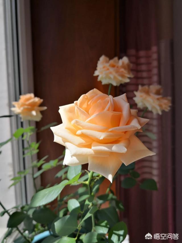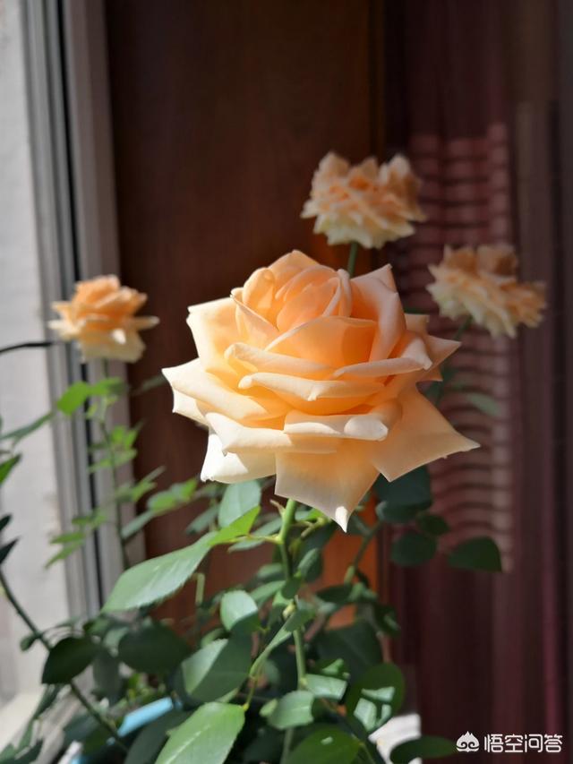 月季花,每月都开。品种繁多,我养了一盆香槟。