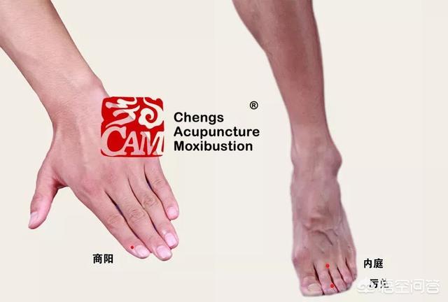 可用手阳明大肠经的井穴商阳刺血,配合足阳明胃经的荥穴内庭,可掐之,有泄胃热的作用,就是减少胃肠的过度蠕动。刺血可一周2-3次,掐穴位每天做2-3次,每次2-3分钟。